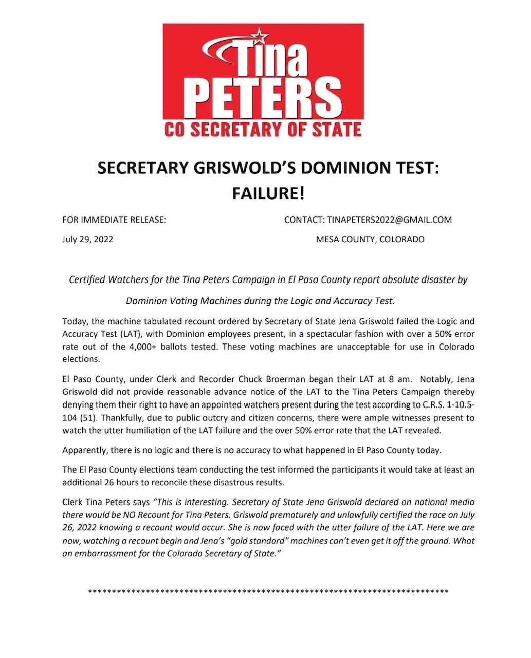More to follow on this story but also to chronicle the Wilson and Peters audit saga as well as the Peters sponsored audit of the Mesa County 2020 results-which was the original point of my update until the cheating became blatant.