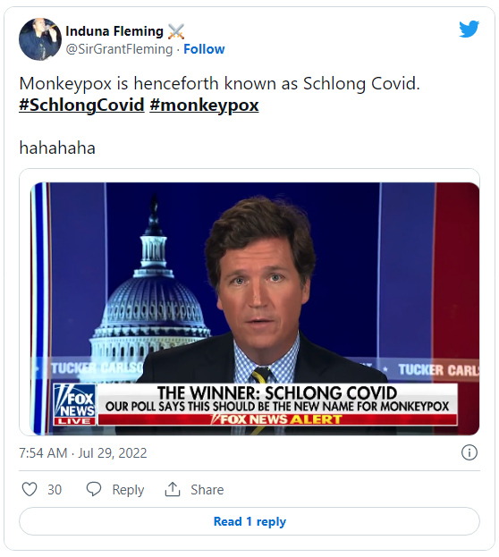 It seems that some people have suggested that the name “Monkeypox” somehow discriminates against blacks and homosexual males, and should be changed, which immediately became the subject of jokes.