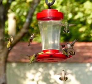 The annual hummingbird migration is about to begin. Our ruby-throated hummingbirds hang out around here for roughly eight months out of twelve, but in late August/early September, their presence can best be described as a charm, a glittering, a hover, a shimmer, or a tune. Those are the actual words for groups of hummingbirds—I did not make that up. I am mesmerized by hummingbirds, and here are a few fascinating facts that my fellow “hummerfans” may already know—yes, I made up that word.