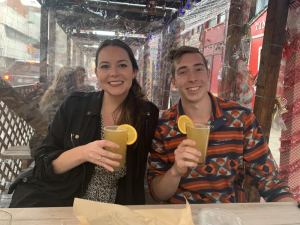 Jelena Loncar, left, with her brother Milan Loncar, in December 2020 outside of Tinsel bar in Center City. Courtesy of Jelena Loncar, via The Philadelphia Inquirer. Click to enlarge.
