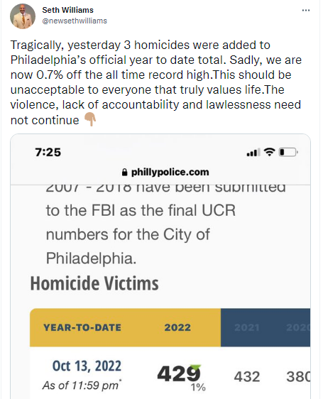 Tragically, yesterday 3 homicides were added to Philadelphia’s official year to date total. Sadly, we are now 0.7% off the all time record high. This should be unacceptable to everyone that truly values life. The violence, lack of accountability and lawlessness need not continue.