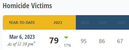 As a daily average, 1.2344 homicides per day yields ‘just’ 451 for the year, but in Philly’s deadliest year, 2021, the 86 homicides as of the 65th day worked out to ‘only’ 483 murders . . . and the city saw 562 killings that year. Warmer weather brings out more gunfire, and Philly is on a clear path to another year of more than 500 people being sent untimely to their eternal rewards.