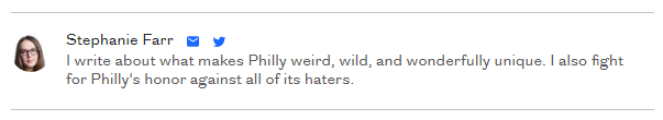 I suspect that Philadelphia Inquirer staff writer Stephanie Farr doesn’t normally write the crime reports, but simply drew the weekend assignment. But the City of Brotherly Love had a bloody, bloody weekend, and Miss Farr wound up being the reporter who had to write about it. Then, when I saw her Inky bio at the bottom of the article, in which she wrote, “I write about what makes Philly weird, wild, and wonderfully unique,” I found the irony inescapable. But, I must at the very least, give her props for using the Oxford comma!