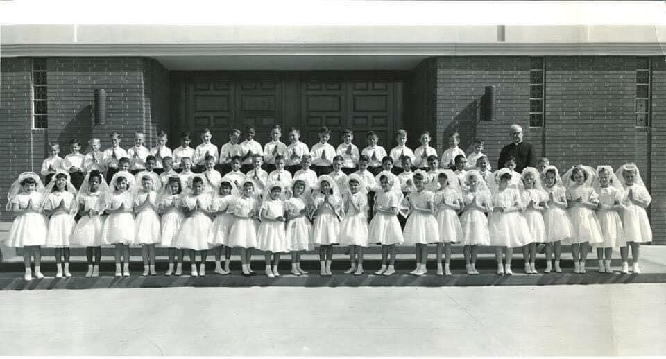 When I started All Hallows as a First Grader in 1962, our new church was only two years old. But built in the last days before Vatican II changes were to strike, our church was built in the old way. A nave that was shaped like a cross. A formal baptistry as you entered from the side. And a grand marble altar where the priest said Mass, all of us — priest and congregation — facing the same direction.