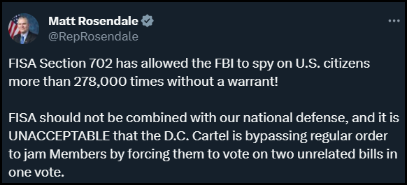 Friday, December 15, 2023, was National Bill of Rights Day. Congress considered this the perfect time period to push through the National Defense Authorization Act (NDAA) and, as a result, extend the Foreign Intelligence Surveillance Act’s (FISA) section 702.