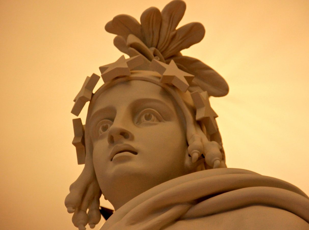 Head of the Statue of Freedom standing atop the Capitol Building looking somewhat bewildered, almost saying, “Where is everybody?”