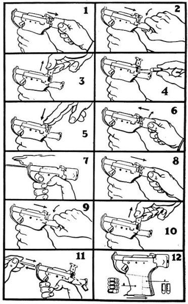 The Liberator was rudimentary, consisting of only 23 parts. It was a single-shot pistol with a smoothbore barrel, meaning it had no rifling to stabilize the bullet. This limited its accuracy and effective range to about 25 feet. The pistol was loaded by unscrewing the barrel, inserting a .45 ACP round, and replacing the barrel. Extra rounds were stored in the pistol grip.