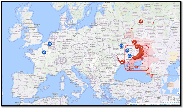 For the sake of argument, let us assume that the map below is accurate enough to demonstrate this military reality. Over three years of constant war, Russia managed to control the areas in red inside the red box. The selection includes the Crimean Peninsula, which Russia took over in 2014 without firing a shot. It is unrealistic to assume that a nation on a war footing that took three years to capture that limited amount of land could take over most of the land shown on the rest of the map.