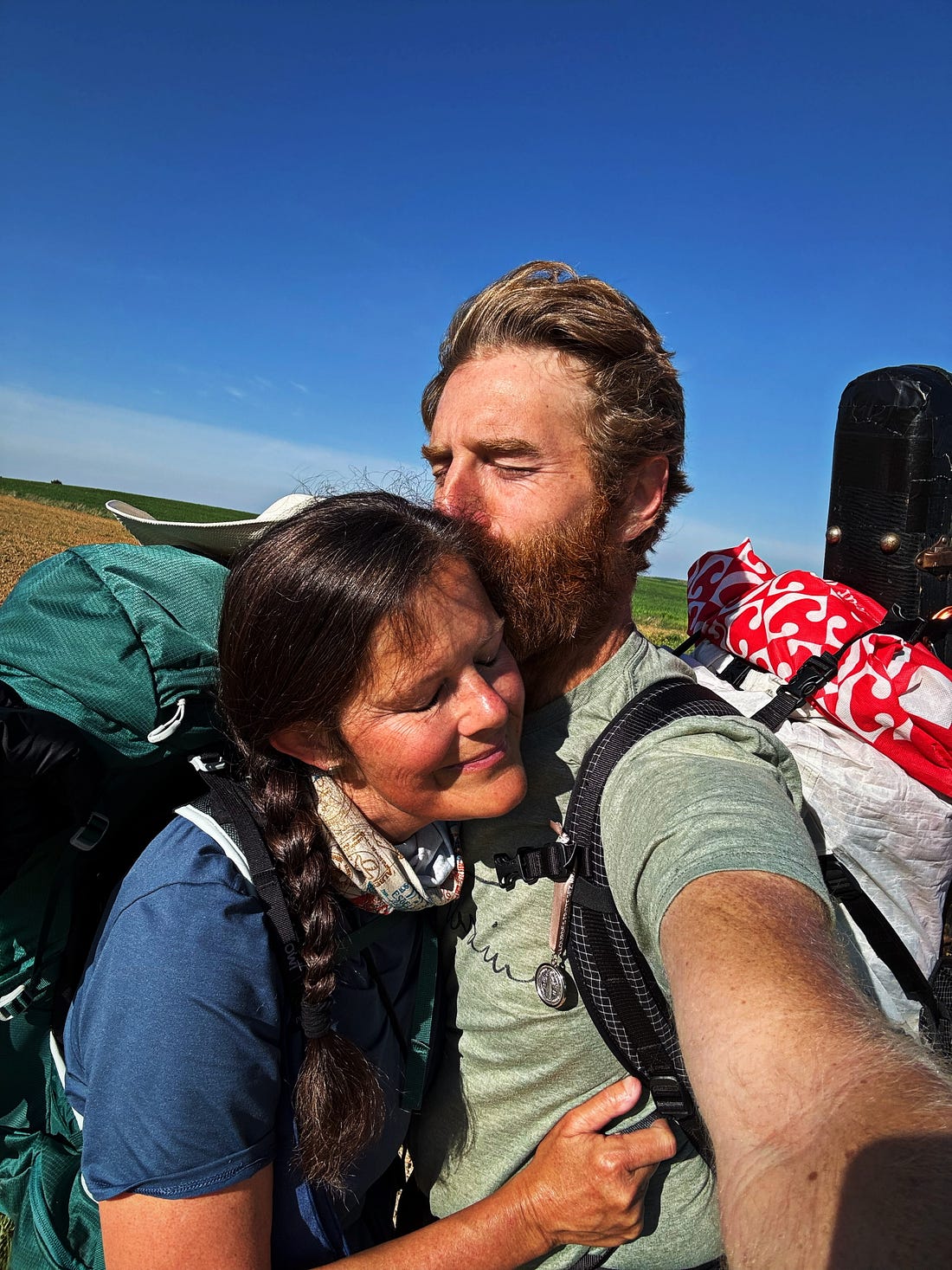 Kristoff had to stop walking yesterday because a blood blister has infected his entire lower leg. His wife walks without him now, walking with us. We all spend much of our daily walk singing and sending homemade music videos to Kristoff, who will meet us at our next village via taxi.