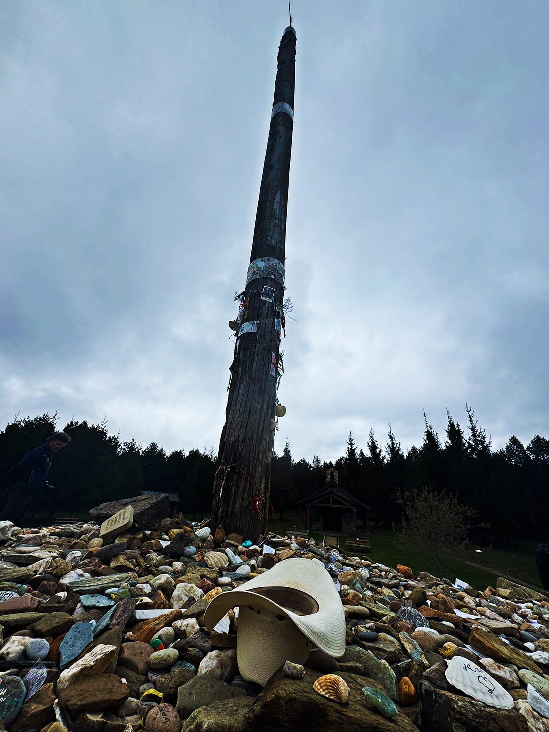 It’s called the Iron Cross. Or “Cruz de Ferro.” It sits on the trail, located at the highest point of the Camino de Santiago, between Foncebadón and Manjarín. It’s tall, really tall. And surrounded by a massive mound of rocks.