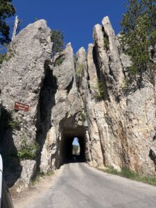 In South Dakota, the wonders continued. Custer State Park left me speechless more than once. We drove winding roads that twisted through mountain tunnels, curved into tight S-turns, and opened up to wide vistas under cloudless blue skies.