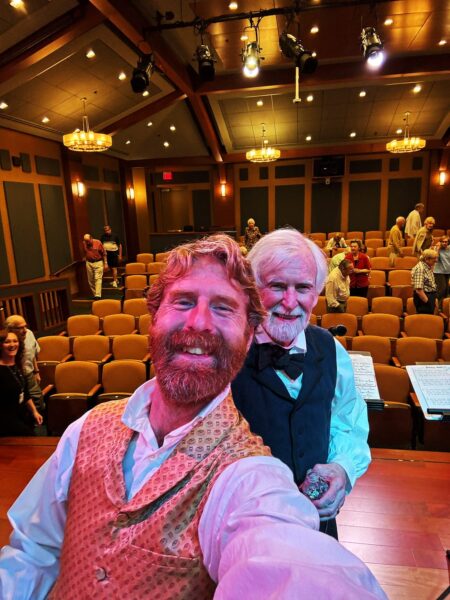So anyway, it was a lovely theater at the retirement home. Bobby and I stood on a grand stage and did our best. Bobby played a banjo. I tortured a fiddle.