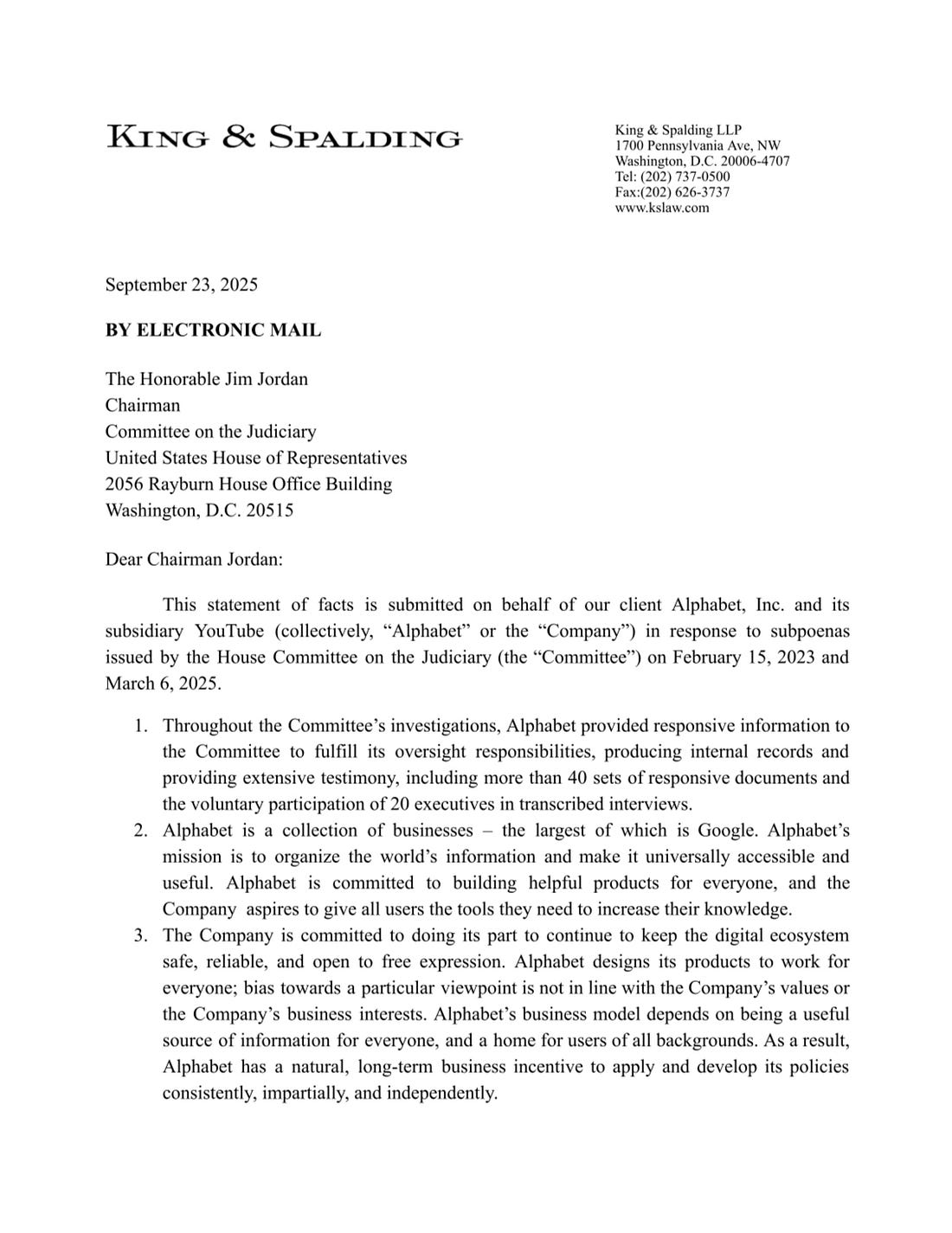 Alphabet has told the House Judiciary Committee that senior Biden administration officials “pressed” Google and YouTube to remove pandemic- and election-related content, including posts that did not violate YouTube’s own rules. In the same letter, Alphabet lawyer Daniel Donovan said YouTube will open a pathway for creators banned under those policies to return.