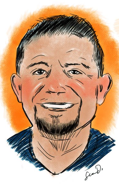 He’s a big supporter of athletics. Including the women’s volleyball team. He even warms up with them if they need someone to run drills.