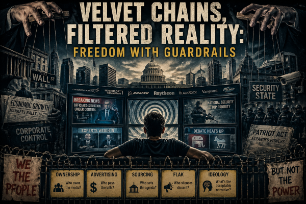 Now here’s where the system gets clever: it doesn’t need to silence you. It filters reality before you ever see it. Noam Chomsky and Edward S. Herman laid this out in Manufacturing Consent (1988) with what they called “structural filters.” Ownership, advertising, sourcing, flak, and ideology—five ways the news gets shaped without anyone issuing marching orders.