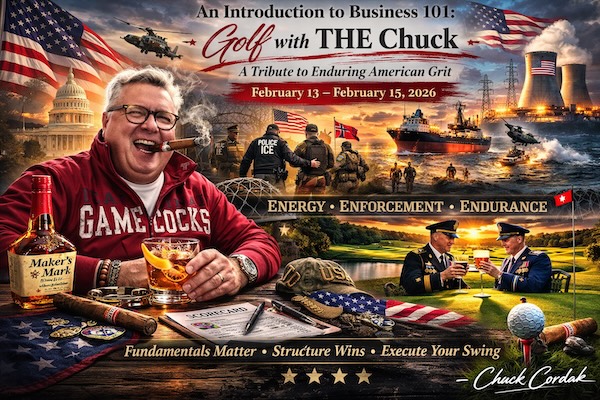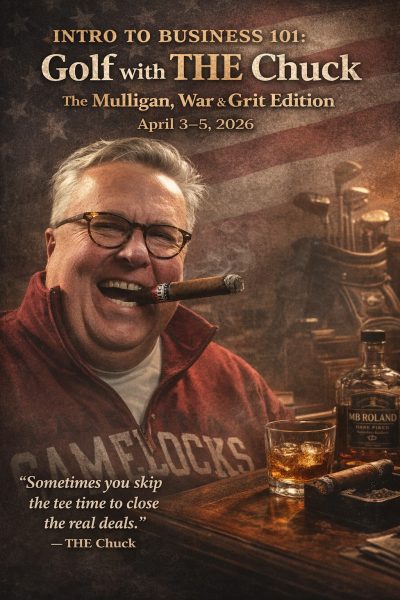 Introduction to Business 101: Golf with THE Chuck A Tribute to Enduring American Grit The Golf, Mulligans, and War Edition April 3rd thru Sunday, April 5th, 2026
