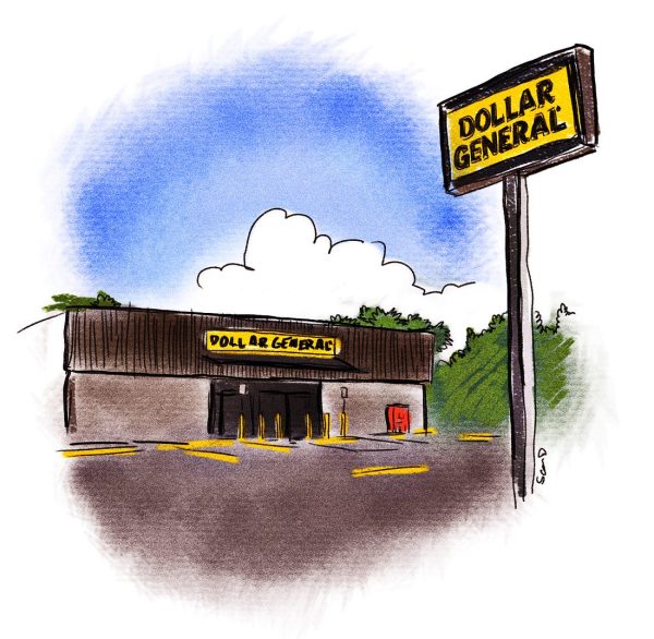 The Girl Scouts were setting up a folding table by the doors of the hardware store.