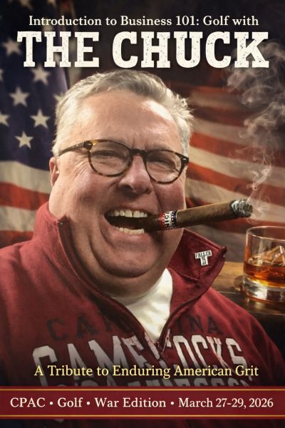 Introduction to Business 101: Golf with THE Chuck A Tribute to Enduring American Grit The Golf, CPAC while just getting over another thwarted Kill Chuck attempt on my life by CCP Democrat Clostridioides difficile, Norovirus & War Edition March 27th – Sunday, March 29th, 2026